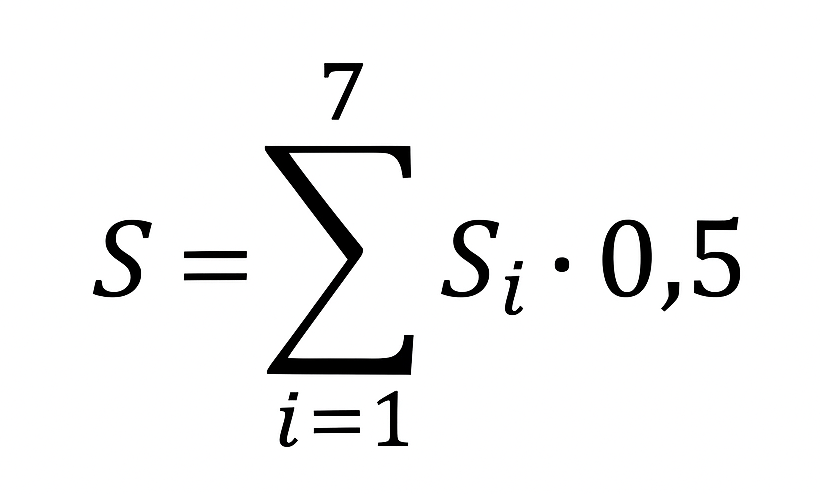 Si – liczbę punktów przyznanych za dany parametr z tabeli.